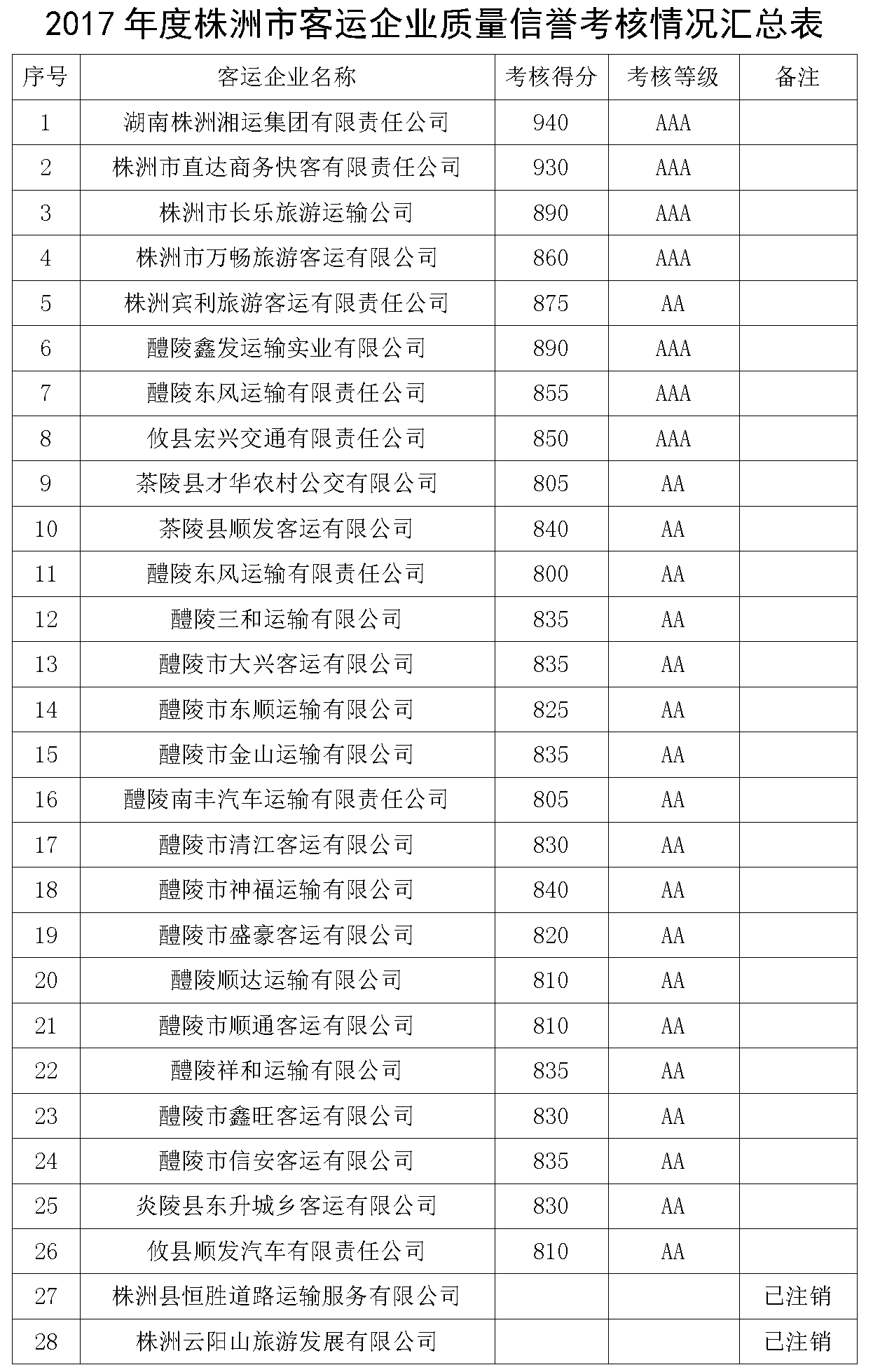 现将我市2017年度客运企业质量信誉考核结果公示并上报省运管局,如有异议的,请于公示之日起15日内书面向我处客运科或省局反映,所反映的内容必须真实。反映人为法人的,反映材料必须由其法定代表人或者授权代表签字并盖章。其他组织或者个人反映的,反映材料必须由其主要负责人或者本人签字,并附有效身份证明复印件,否则视同无效。