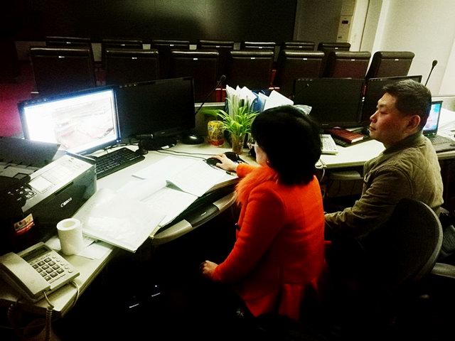 2月15日(除夕),株洲市道路运输管理处工作人员在查看长途客车实时监控情况。