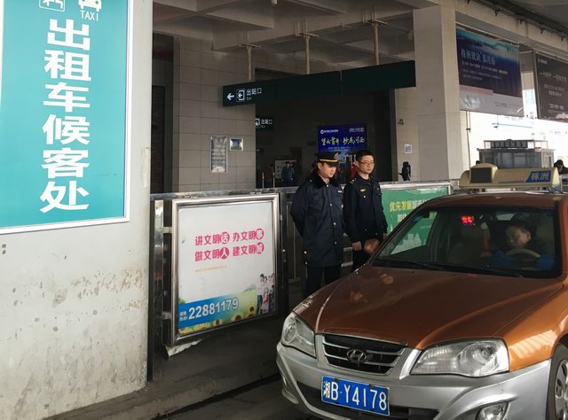2月15日(除夕),株洲市道路运输管理处执法人员在武广高铁株洲西站值守,维护城市客运市场秩序。