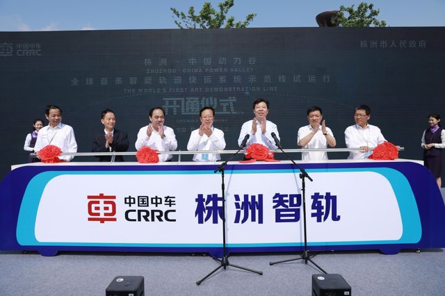 “一、二、三,开通启动!”5月8日上午9点50分,随着全球首条智轨快运A1线(首期)试运行开通启动装置的按下,全球首条智能轨道快运系统(AutonomousrailRapidTransit,以下简称“智轨”)正式进入试运行阶段。株洲市委书记、市人大常委会主任毛腾飞,中国中车集团副总经理贾世瑞,市委副书记、市长阳卫国参加开通仪式。